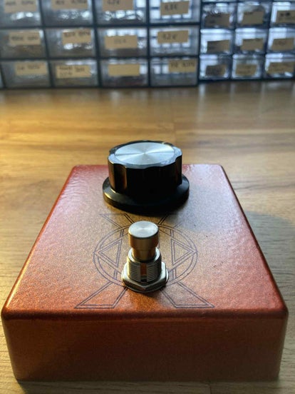 METATONE MKII -HORNET- EXCUSIVE - wersja na bazie schematu efektu ZoNk mkII na tranzystorach silikonowych 1x109B 1x108B. Efekt w oryginalnej i ekskluzywnej obudowie z lat '60, ręcznie malowany w indywidualnym kolorze.